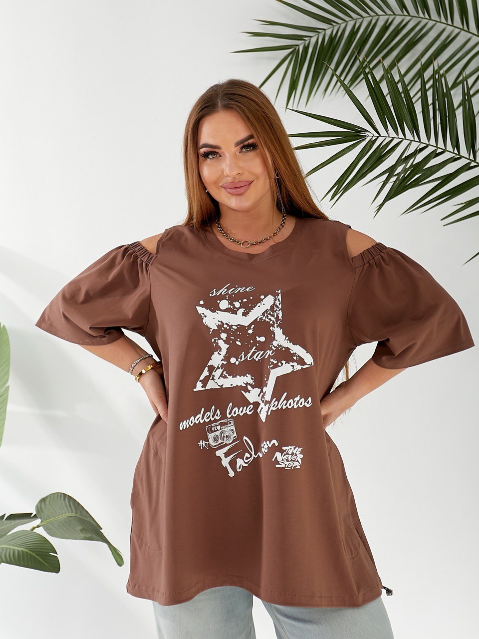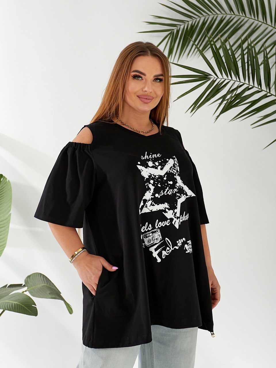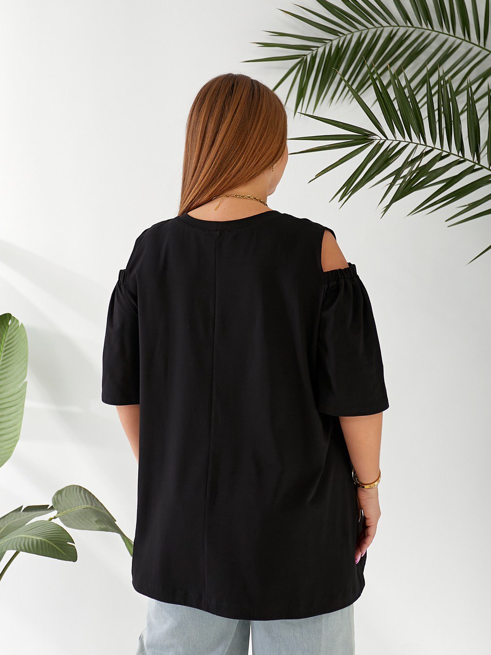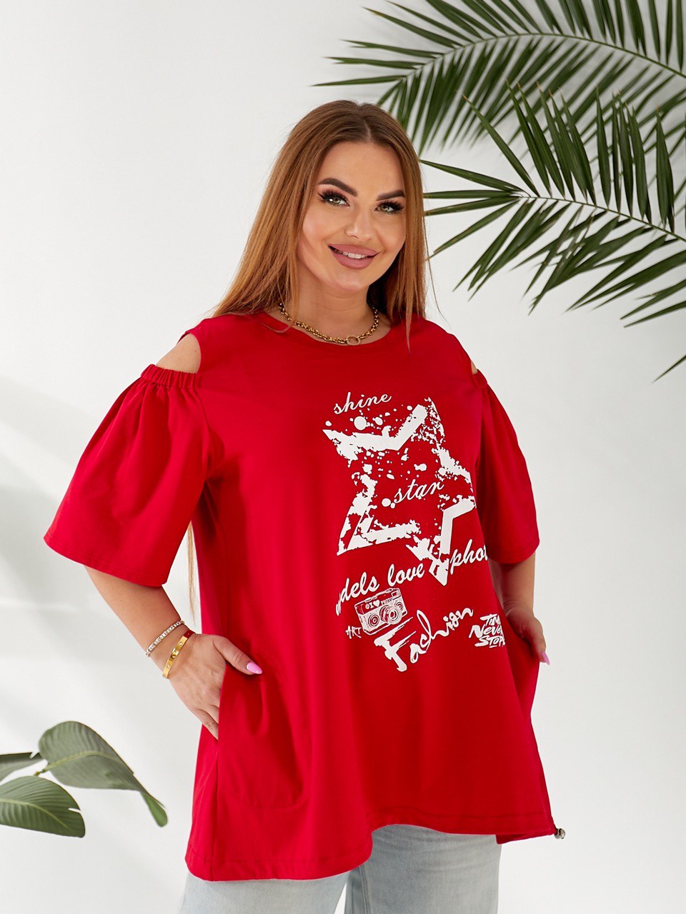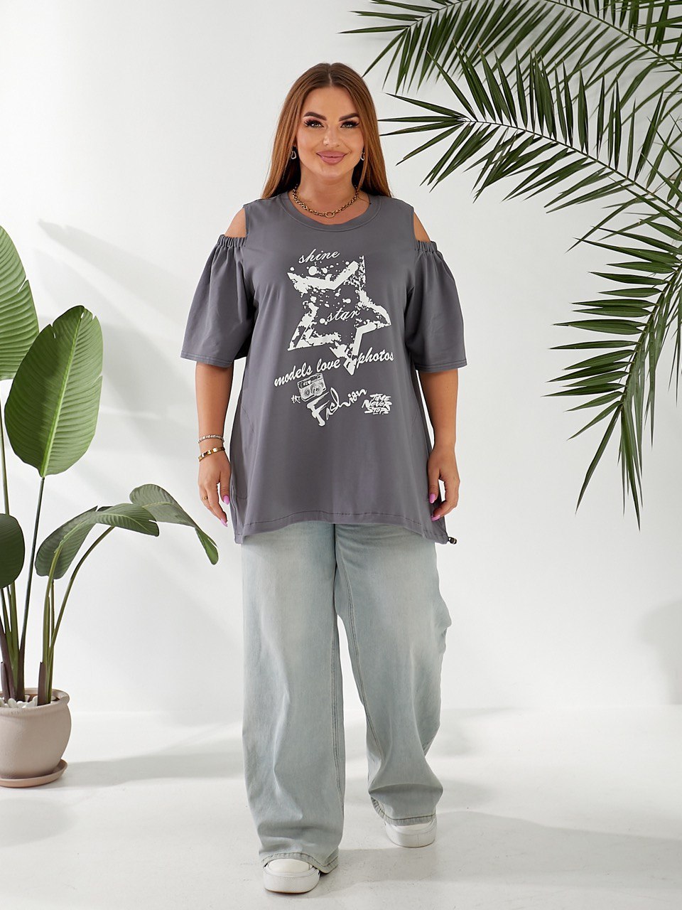 Ця модель — ідеальне поєднання невимушеного стилю та жіночності. Завдяки оригінальному крою та натуральному матеріалу, футболка стане яскравим акцентом у вашому літньому гардеробі, забезпечуючи комфорт навіть у найспекотніші дні.